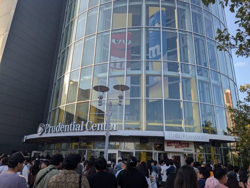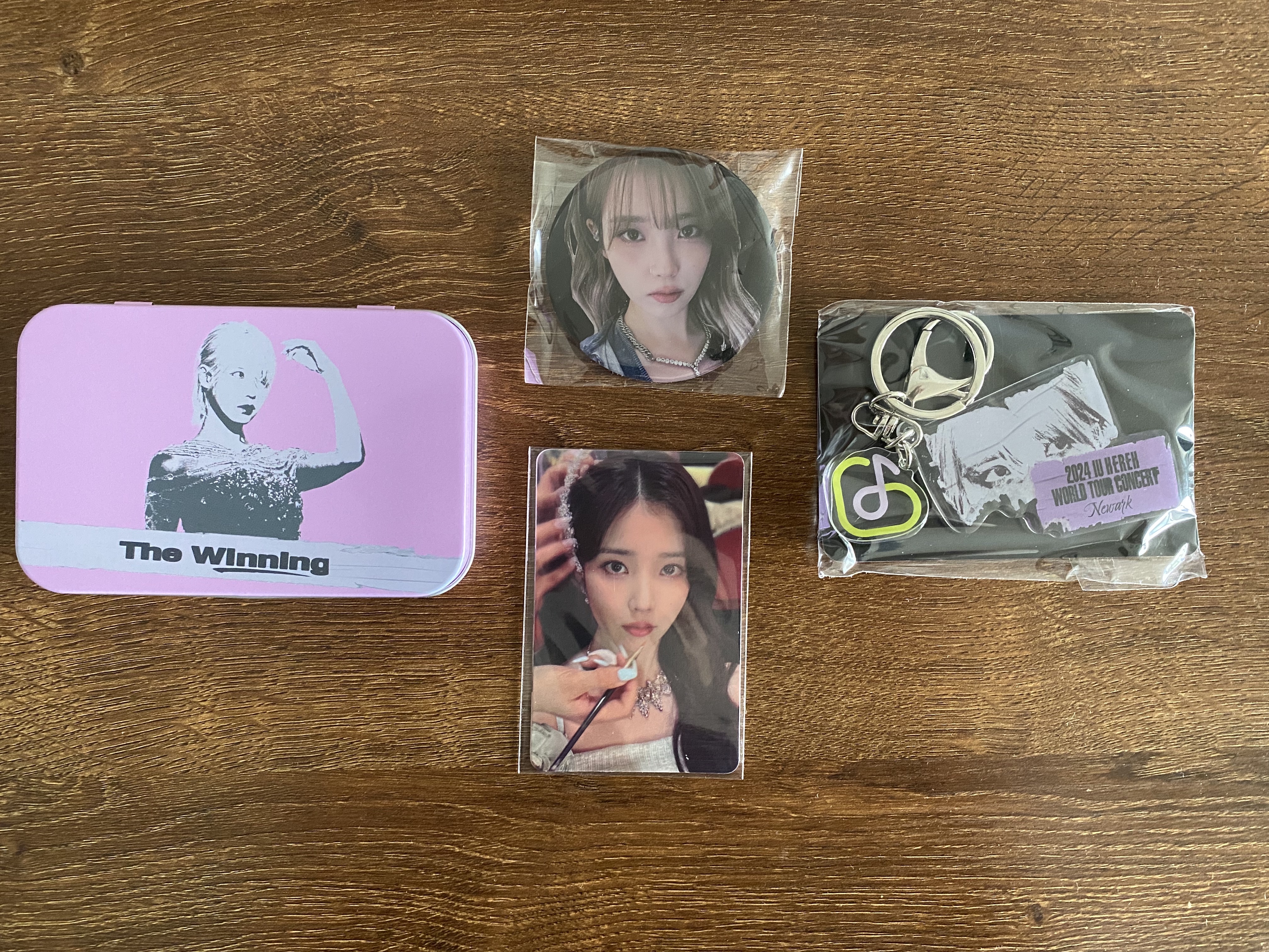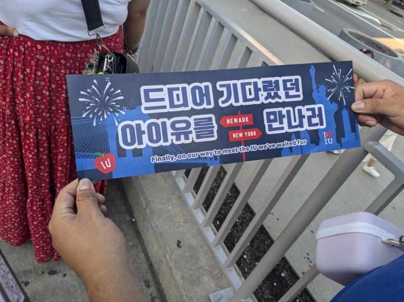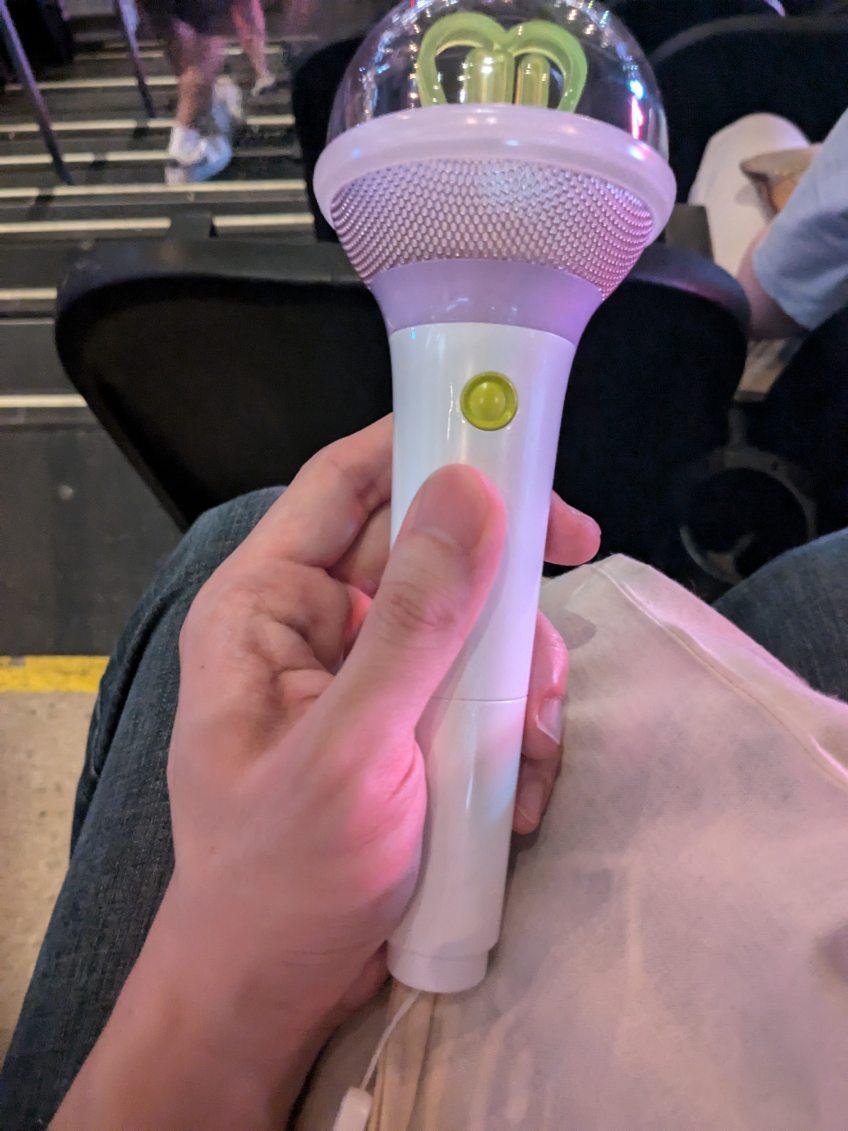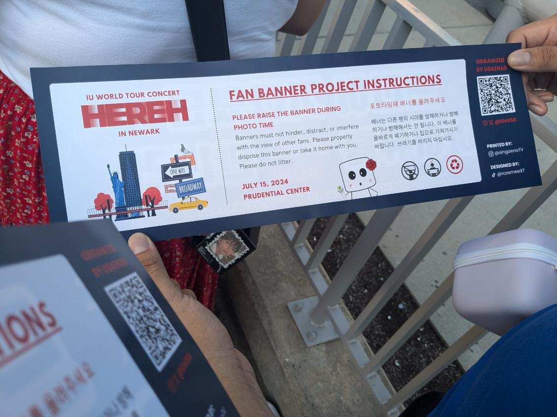 My friend took me to IU’s July 15th concert at the Prudential Center in Newark as a birthday gift. He also gave me the official Light Stick for the concert. We’re both fans of IU, so it was nice to be able to see her in person. We hung out and chatted for a bit before heading to Newark for the concert. Once we got to the Prudential Center, the wait wasn’t too bad. Someone was giving out the fan banners which my friend was holding up here in the pictures. When we got inside they gave us a little giveaway gift which was a small case that contained a button, keychain, and picture.