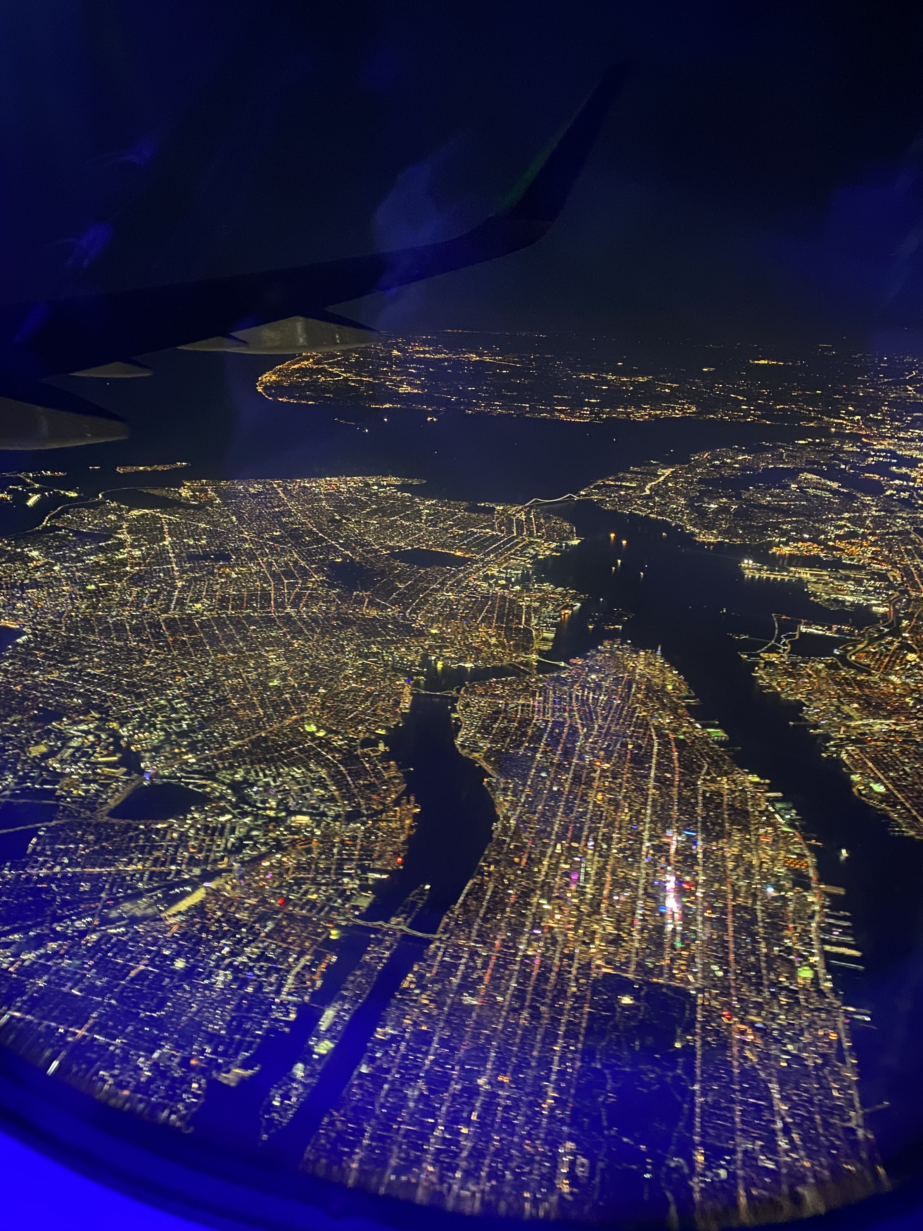 Here are the return flight pictures. The daylight one is after takeoff from San Diego and the nighttime one is arriving at JFK in New York. After the long day, I was happy to get home, wash up, and get into my pajamas and eat dinner. Before the flight I just had a few pieces of melon, a banana, and half a bagel for breakfast, so I was definitely hungry!