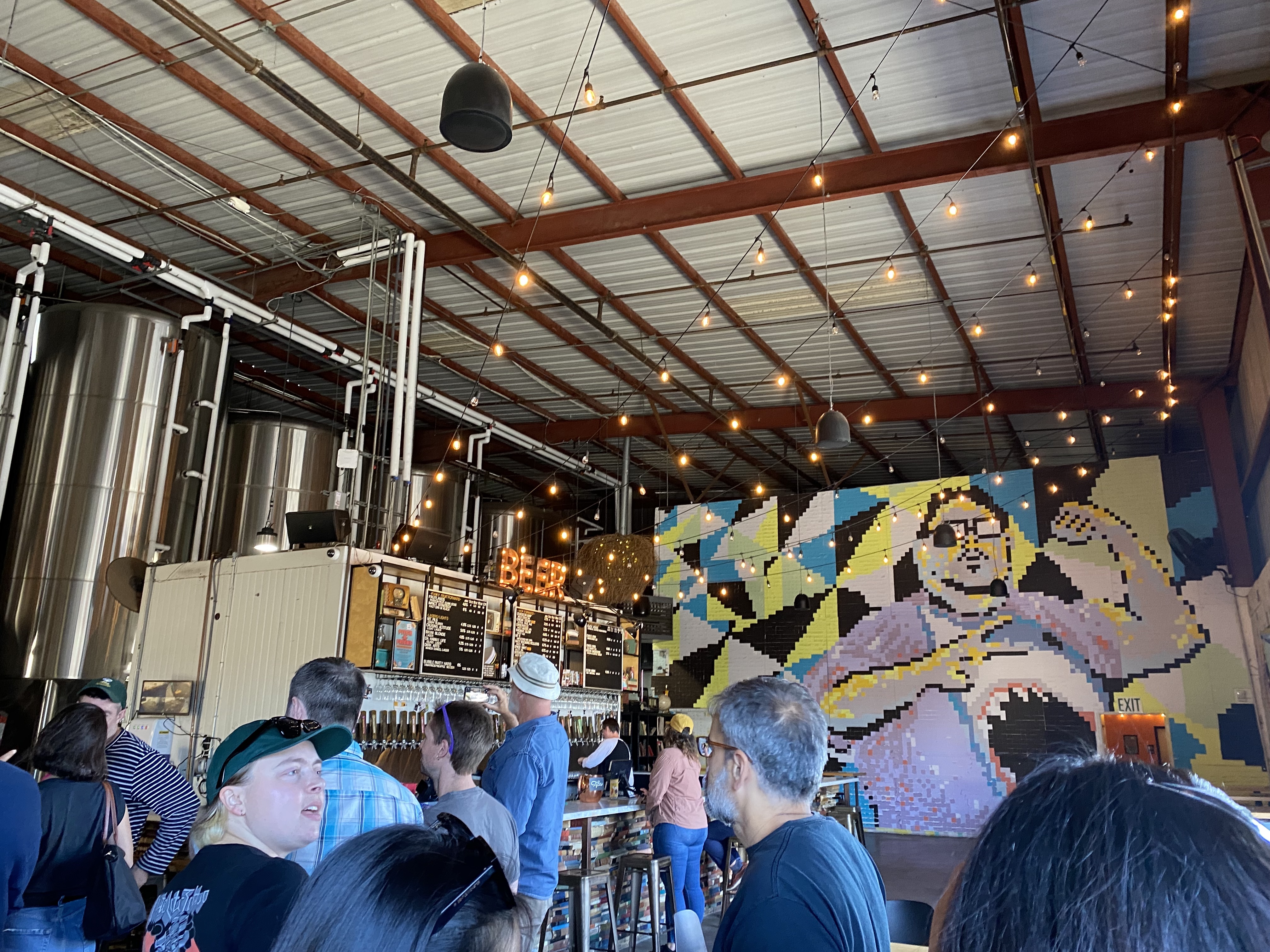 For the beer tour, we had a tour guide who provided us with information on the brewing process, history of the breweries, and gave us samples of different beers to try. In Coronado they also provided us with food such as pretzels and chips and spinach and artichoke dip. Our tour guide was very knowledgeable and organized which made the tour really fun and engaging. She’s the one with the yellow hat in the picture here in the Modern Times Beer pictures: